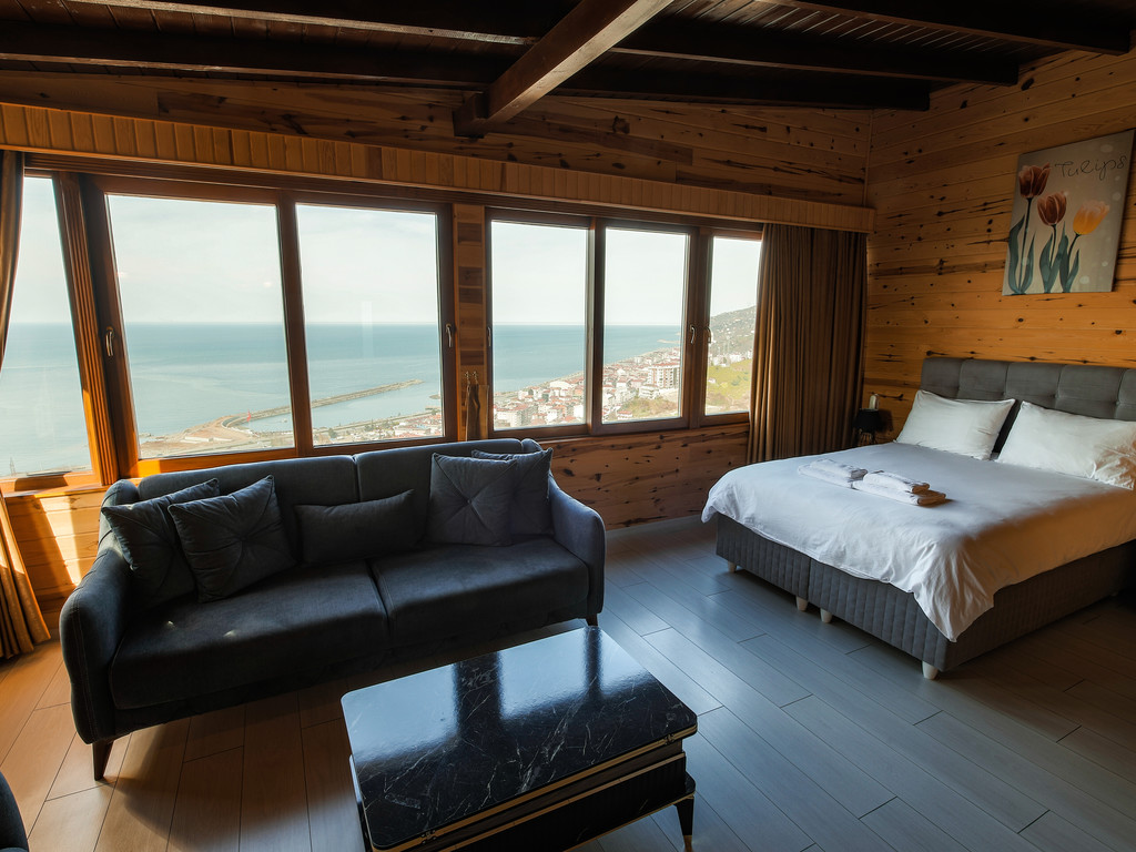 Dağ ve Deniz Manzaralı Odamızın İçerisinde;